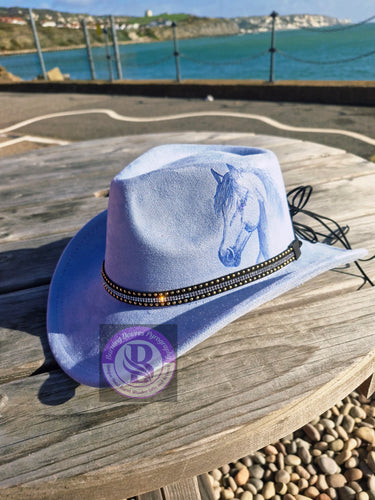 Unique hand burnt vegan suede stetsons and baseball caps.