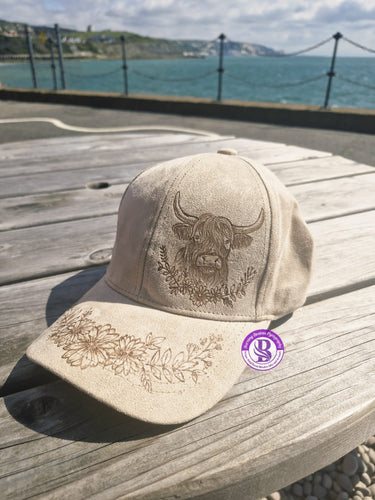 Baseball Cap -Highland cow/flower design- Free delivery